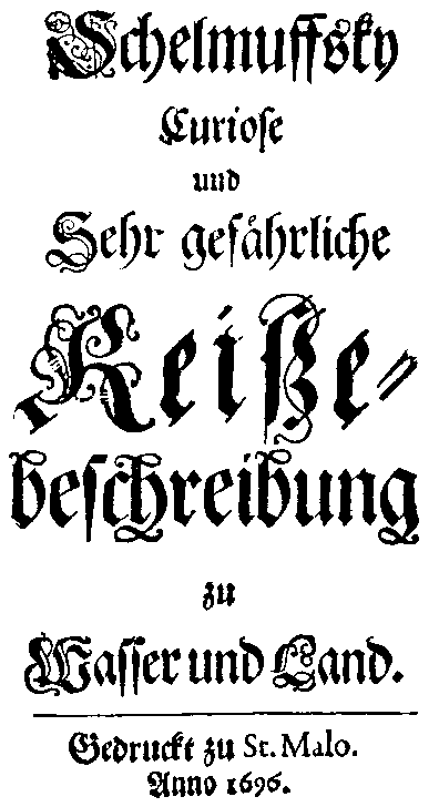 Schelmuffsky| Curiose| und| Sehr gefährliche| Reiße-|beschreibung| zu| Wasser und Land.| [rule]| Gedruckt zu St. Malo.| Anno 1696.
