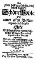 Der| Zwar hefftig gedrückte, doch| endlich beglückte| Schöne Pohle,| Die| unter allen Bestän-|digen beständigste| Liebe| Sosich zwischen einem Pohl-|nischen Pfaltzgraffen und der| tugendvollen Beralde| zugetragen,| Mit überaus anmuthigen Umb-|ständen als jemahlen in dergleichen Ro-|mainen sind gefunden worden, zuvor in Frantzösi-|scher Sprache beschrieben und ietzo ins| Teutsche übersetzt.| Durch| C. G. M. P. O.| [rule]| Franckfurt und Leipzig,| Bey Christian Weidmann, 1684.![]() |