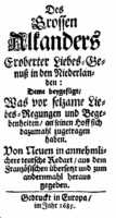 Des| Grossen| Alkanders| Eroberter Liebes-Ge-|nuß in den Niederlan-|den:| Deme beygefügt,| Was vor selzame Lie-|bes-Regungen und Bege-|benheiten, an seinen Hoff sich| dazumahl zugetragen| haben.| Von Neuen in annehmli-|chere teutsche Redart, aus dem| Französischen übersetzt und zum| andernmahl heraus| gegeben.| [rule]| Gedruckt in Europa,| Im Jahr 1685.![]() |