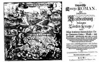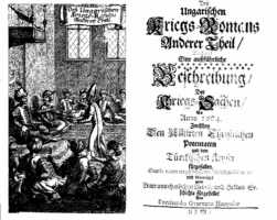 Deß| Ungarischen| Kriegs-Romans,| Anderer Theil| Welcher ist| Eine außführliche| Beschreibung,| Der| Kriegs-Sachen| So| Anno 1684.| Zwischen| Den Alliierten Christlichen| Potentaten| und dem| Türckischen Keyser| fürgefallen| Sambt vielen eingeschlossenen [...]lichen Discoursen| und Materien| unter| Einer annehmlichen Liebes-und Helden-Ge-|schichte| fürgestellet| Von| Everhardo Guernero Happelio.| [rule]| ULM,| Druckts und verlegts Matthäus Wagner, 1685.![]() |