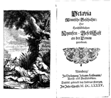 Octavia| Römische Geschichte:| Der| Hochlöblichen| Nymfen-Gesellschaft| an der Donau| gewidmet.| [vignette]| Nürnberg,| In Verlegung Johann Hoffmann,| Buch- und Kunsthändlers.| Daselbst gedruckt bey Andreas Knorzen.| Im Jahr Christi M.DC.LXXXV.![]() |