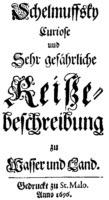 Schelmuffsky| Curiose| und| Sehr gefährliche| Reiße-|beschreibung| zu| Wasser und Land.| [rule]| Gedruckt zu St. Malo.| Anno 1696.![]() |