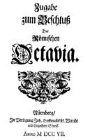 Zugabe| zum Beschluß| Der| Römischen| Octavia.| [vignette]| Nürnberg,| In Verlegung Joh. Hoffmanns sel. Wittib,| und Engelbert Streck.| Anno M DCC VII.![]() |