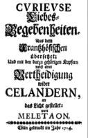 Das wandelbare Glück im Lieben, in einer anmutigen Liebes-Geschicht vorgestellet von Helmondus, Weißenfels, Johann Friedrich Wehrmann 1714.![]() |