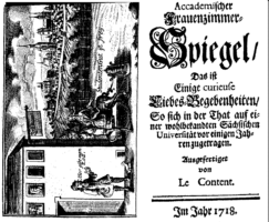 Die Gekrönte Beständigkeit in einer ungemein curieusen Liebes-Geschicht der Marquisin de Mauleon. Franckfurt/ Leipzig, 1718.![]() |