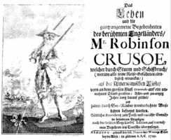 Het Leven en de wonderbaare gevallen van Robinson Crusoe [...] Nu uit het Engels vertaald, en met figuren benevens een nette kaart zyner zwerving verrykt. Eerste deel. Amsterdam, 1720.![]() |