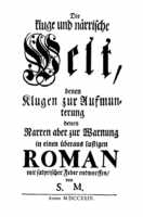 Die| kluge und närrische| Welt,| denen| Klugen zur Aufmun-|terung| denen Narren aber zur Warnung| in einem überaus lustigen| ROMAN| mit satyrischer Feder entworffen,| von| S. M.| [rule]| Anno MDCCXIII.![]() |